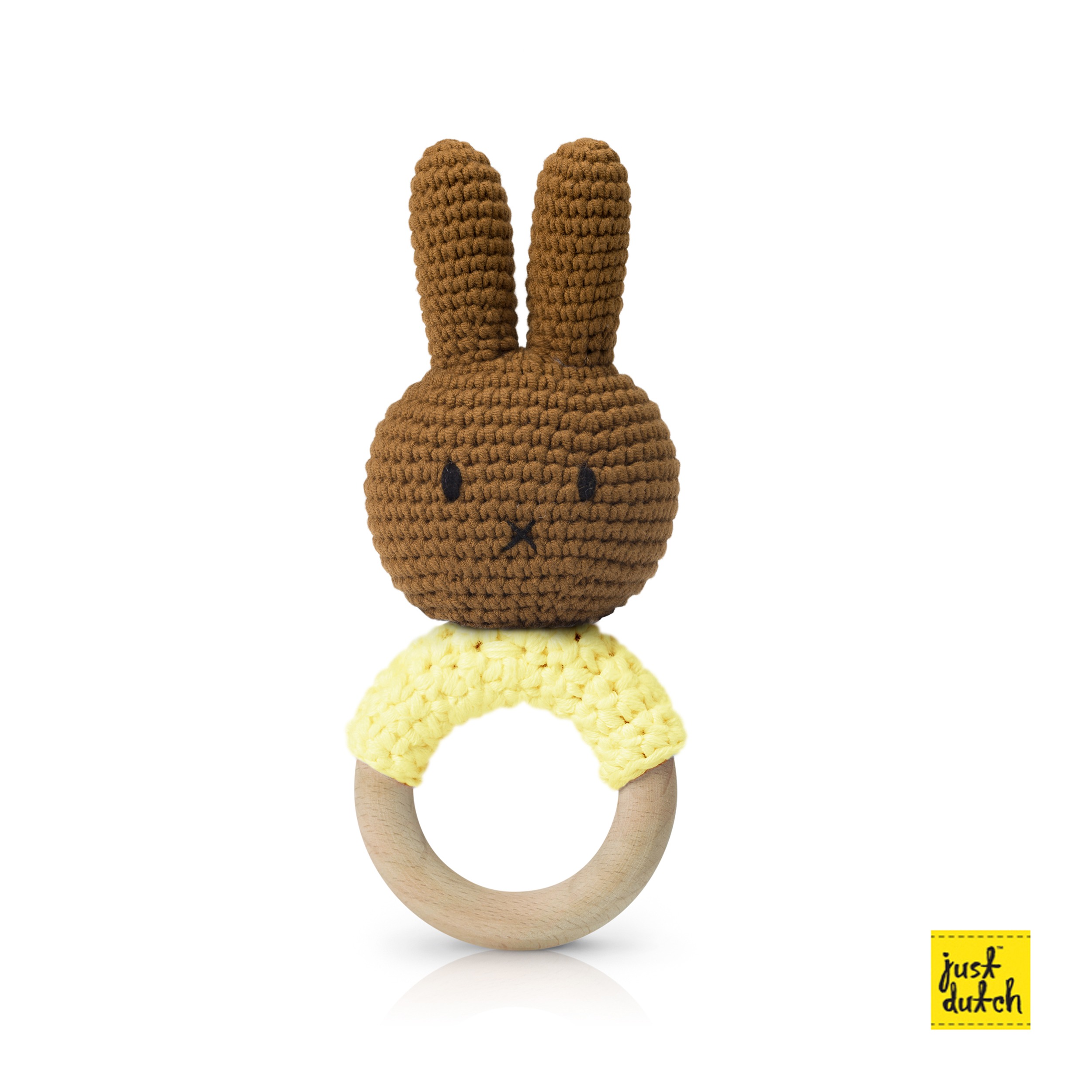 melanie handmade teether ring, pastel yellow, 100% organic cotton+ rubber wood (the most environmentally friendly type of wood), 18 cm, CE 0+