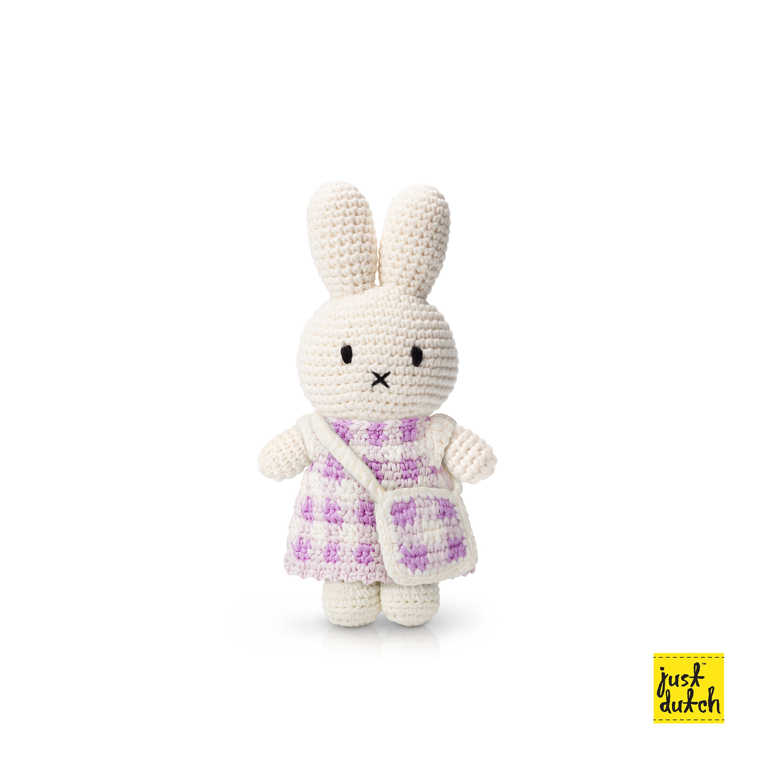 Nijntje handmade en haar pastel lila ruitjes jurk + tasje